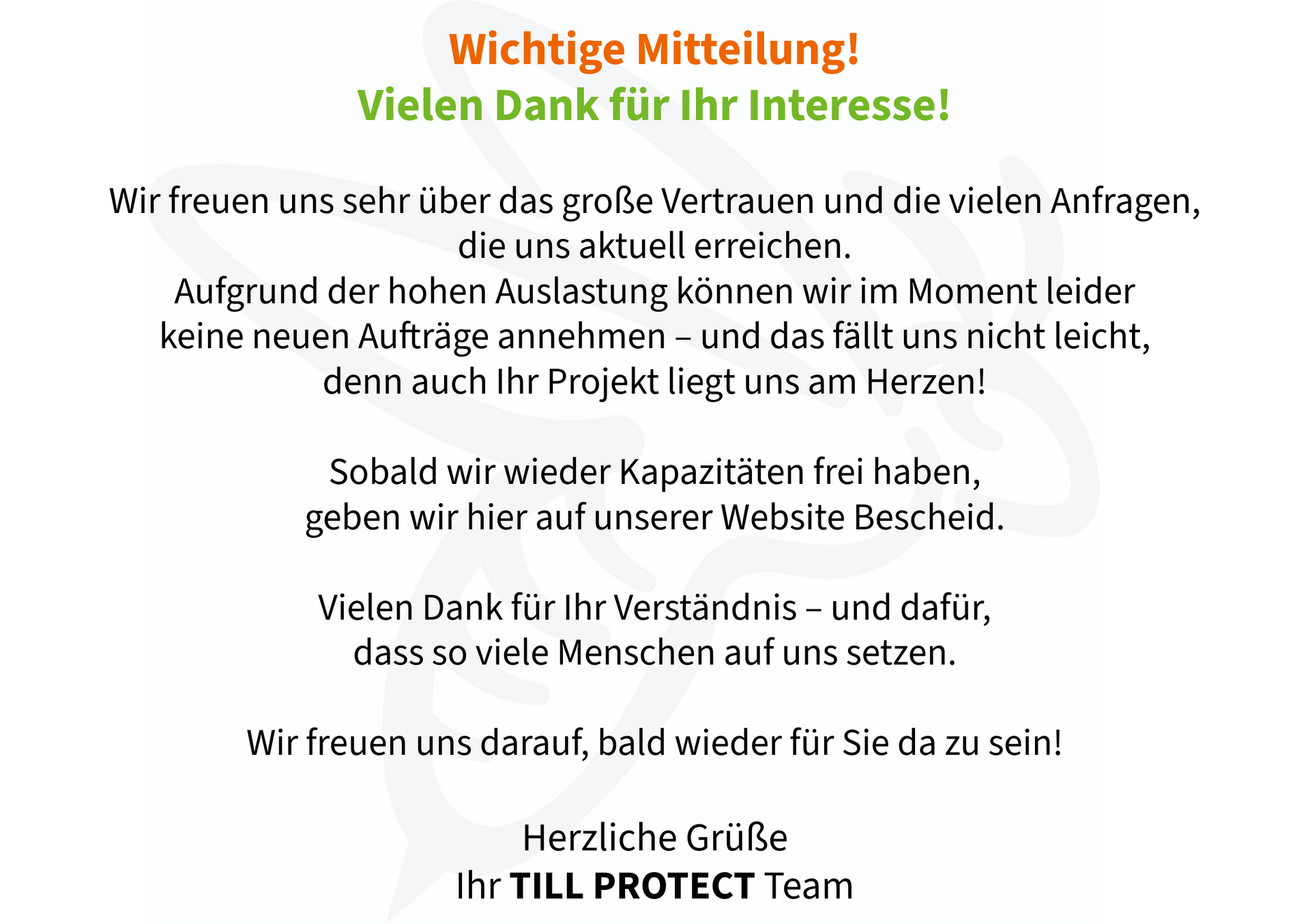 Bitte beachten Sie, dass wir auf Grund von Problemen mit der Telefonleitung aktuell telefonisch schwer erreichbar sind. Senden Sie uns gerne eine E-Mail mit Ihrem Anliegen oder nutzen Sie das Nachrichtenformular und wir melden uns zeitnah bei Ihnen zurück.